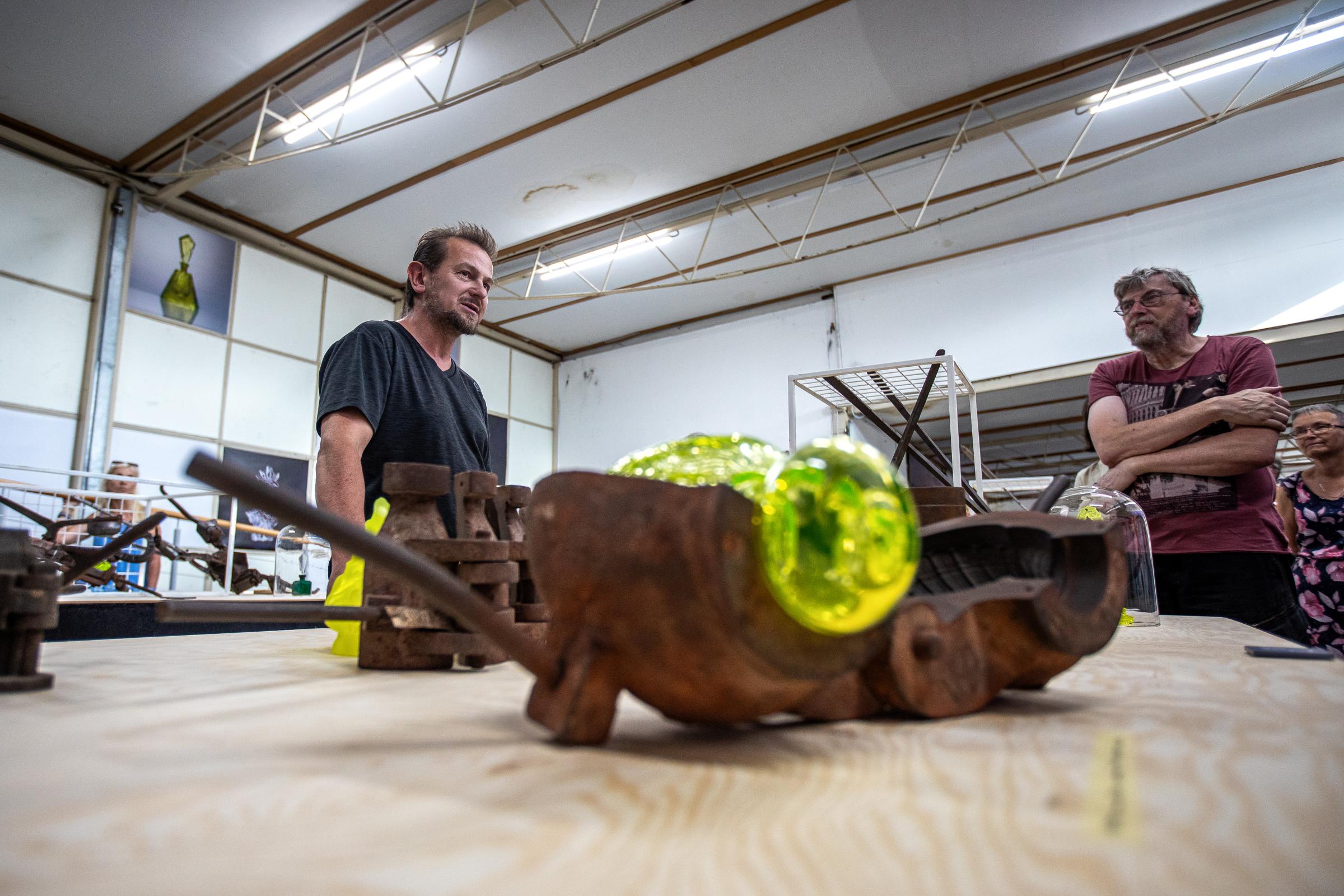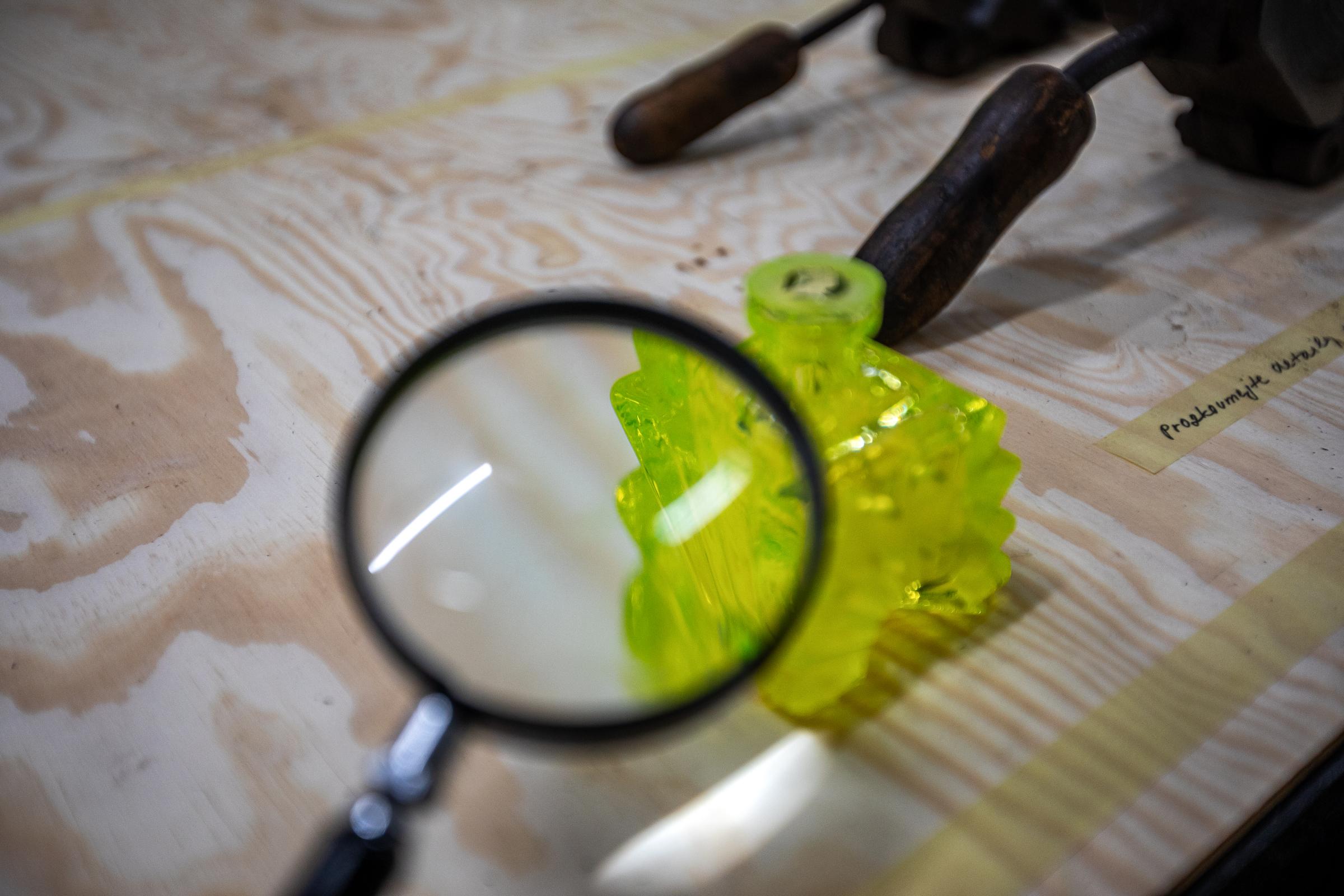 Výstava představuje i postup výroby skleněných předmětů pomocí technologie lití do formy. Od lití horké skloviny do kovového těla až po finální broušení, leštění a dekorování. Návštěvníci tak mohou nahlédnout do procesu, který obvykle zůstává skrytý, do proměny beztvaré hmoty v přesně daný tvar.